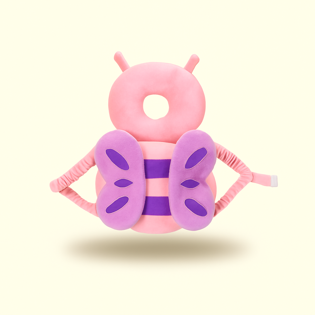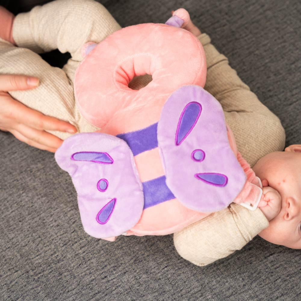 Ja! Vores beskyttelsespude er designet med bløde, stødabsorberende materialer og sikre stropper, der ikke generer dit barn. Den er CE-certificeret og skabt med fokus på komfort og tryghed.